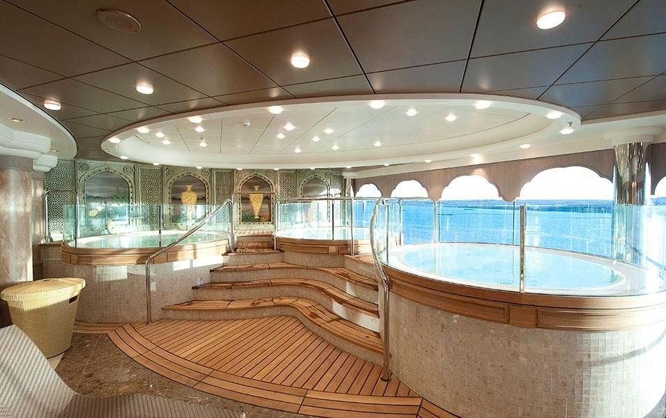 The ship’s leisure facilities include a lavish spa, an open-air pool complex and an indoor pool with a retractable roof, so you can swim whatever the weather. Then there’s tennis, minigolf, bowling, billiards, a high-tech gym and a jogging track.